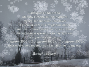 1 лютага 2026 а 14/00 у музейна-выставачным комплексе Гісторыка-культурнага музея-запаведніка “Заслаўе” мае прайсці імпрэза ў рамках экспазіцыйна-выставачнага праекта „Вяртанне ў Заслэў. Яўрэйскія словы, сузор’е агеньчыкаў